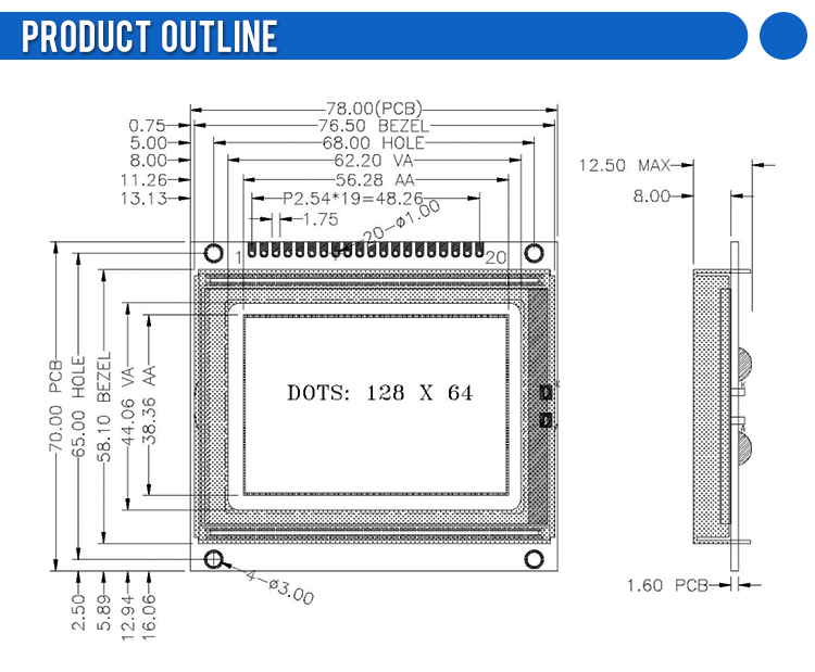 Blue Film LCM12864F-3 Anti-Interference Graphic Dot Matrix LCD Screen 78X70MM Module LCD Display Screen