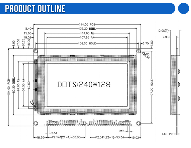 Blue Film LCM240128B LCD Display Module With Touch Panel Screen PlaStic T6963C Or RA6963 Or UCI6963
