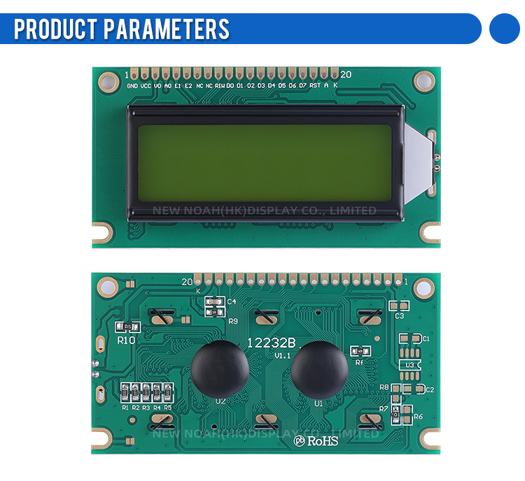 Yellow Green Film 12232B Character Screen 20PIN Standard Interface LCD Display 3.6-Inch LCD Screen