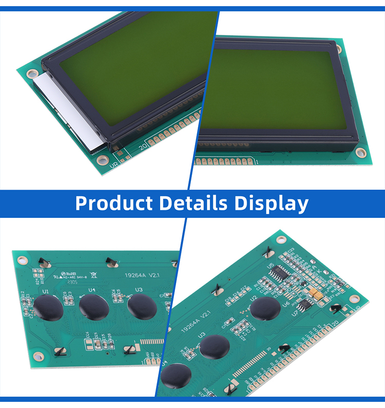 Yellow Green Film Uv ResiStant Material 19264A Graphic LCD Display SBN0064 Warranty For Three Years 5V 3.3V